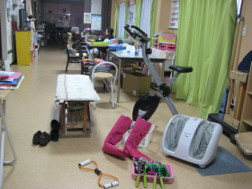| 9:00 | 9:10 ほとんどの利用者様が到着 健康観察(体温、血圧測定 など)、お茶 各自のプログラムで機能訓練 |